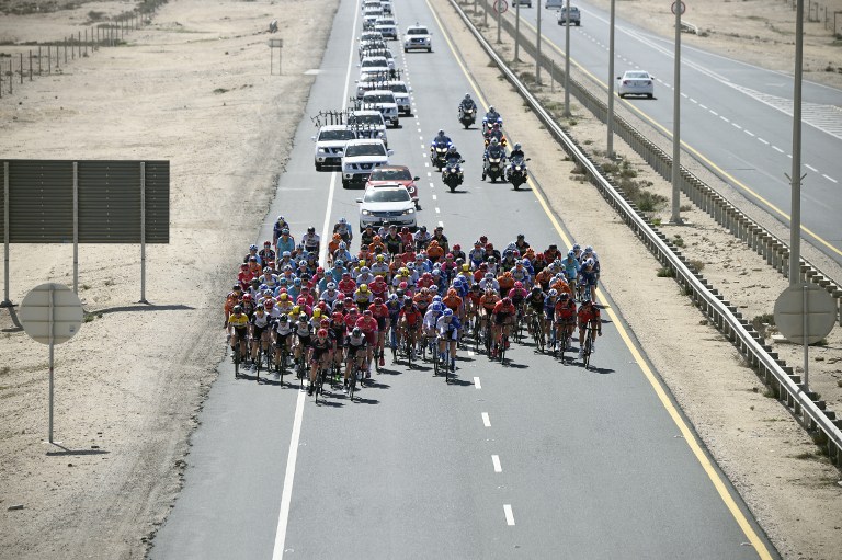 The pack rides on the highway during the second stage of the 2016 Tour of Qatar cycling race, starting and finishing at the Qatar University on February 9, 2016. Norway's Alexander Kristoff won a sprint finish ahead of Britain's Marc Cavendish in the second stage of the Tour of Qatar.