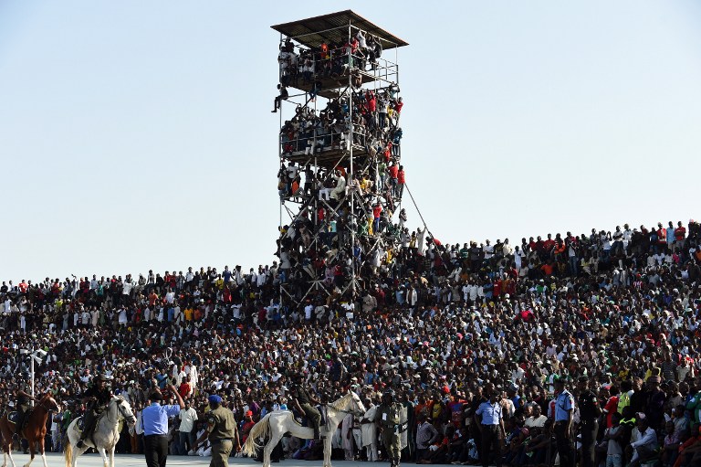 Supporters attend the African Cup of Nations qualification match between Egypt and Nigeria, on March 25, 2016, in Kaduna.