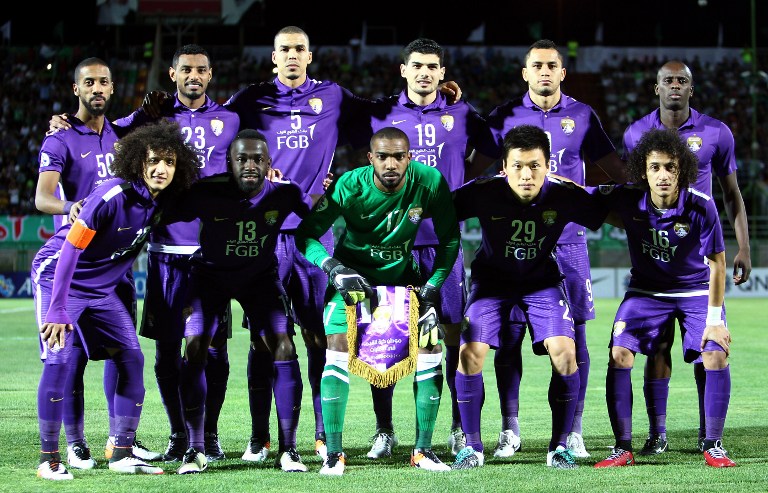 Emirati Al-Ain club's players pose for a picture during their Asian Champions League football match against Iranian Zobahan club at Foolad Shahr Stadium in Isfahan on May 25, 2016. MEHDI ZARE / AFP
