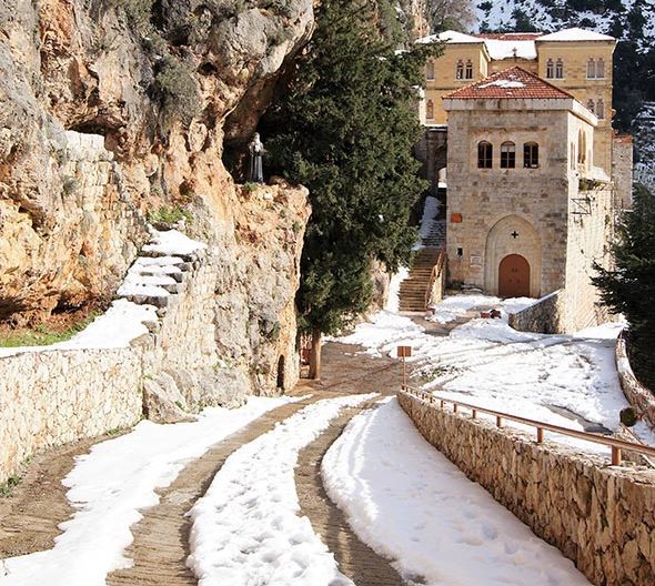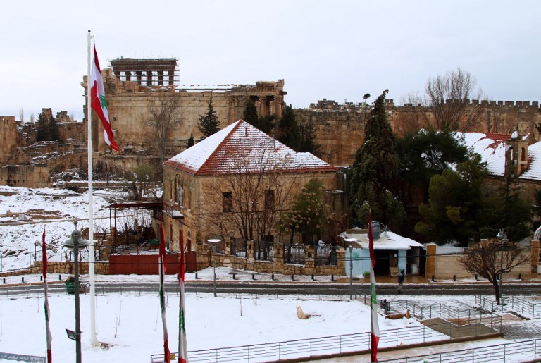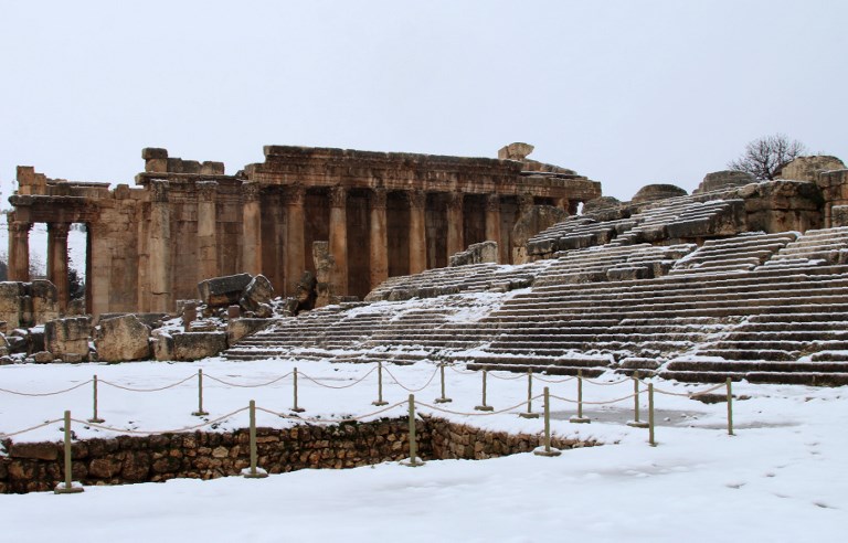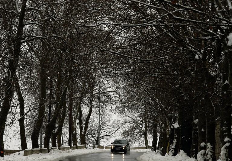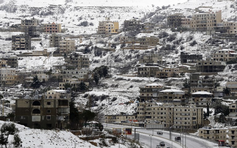Waves crash into the seawall of Beirut, Lebanon, during a strong storm that brought freezing temperatures and heavy rainfall to the coast and snow to the Lebanese mountains.