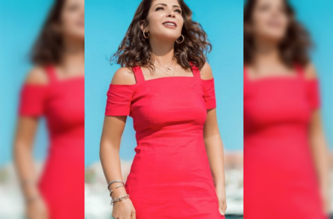 In the latest photoshoot, Mona sported a short red dress off shoulder dress that added an active vibe to the Egyptian actress.