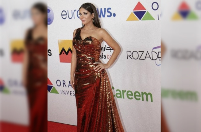 The pictures were taken at Al Gouna city as she was there to attend "Al Gouna Film Festival" during which she appeared wearing a formal golden bronze dress on the red carpet that got cameras flashing.