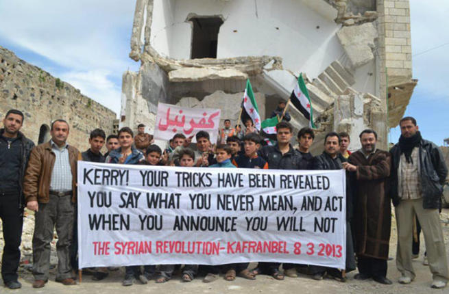 Always the first to tap in to current affairs, the Kafranbel guys reacted to the news that John Kerry had been appointed U.S. foreign secretary of state with a provocative message - act now or never for Syria.