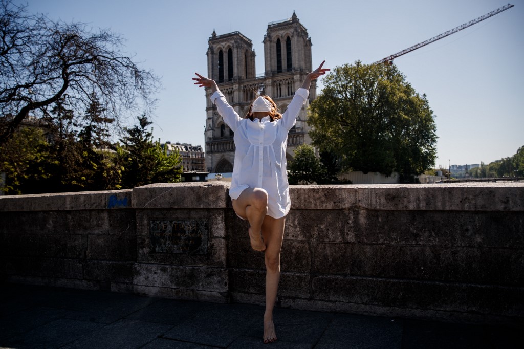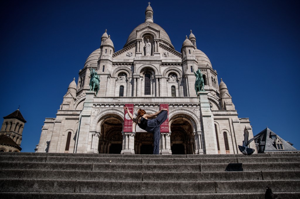 Syrian dancer and choreographer Yara al-Hasbani performs a dance on the empty Trocadero square in Paris on April 22, 2020. Sameer Al-DOUMY / AFP