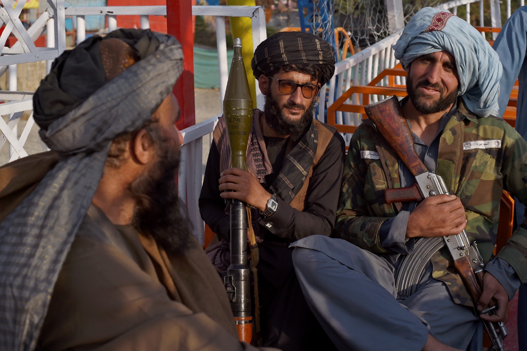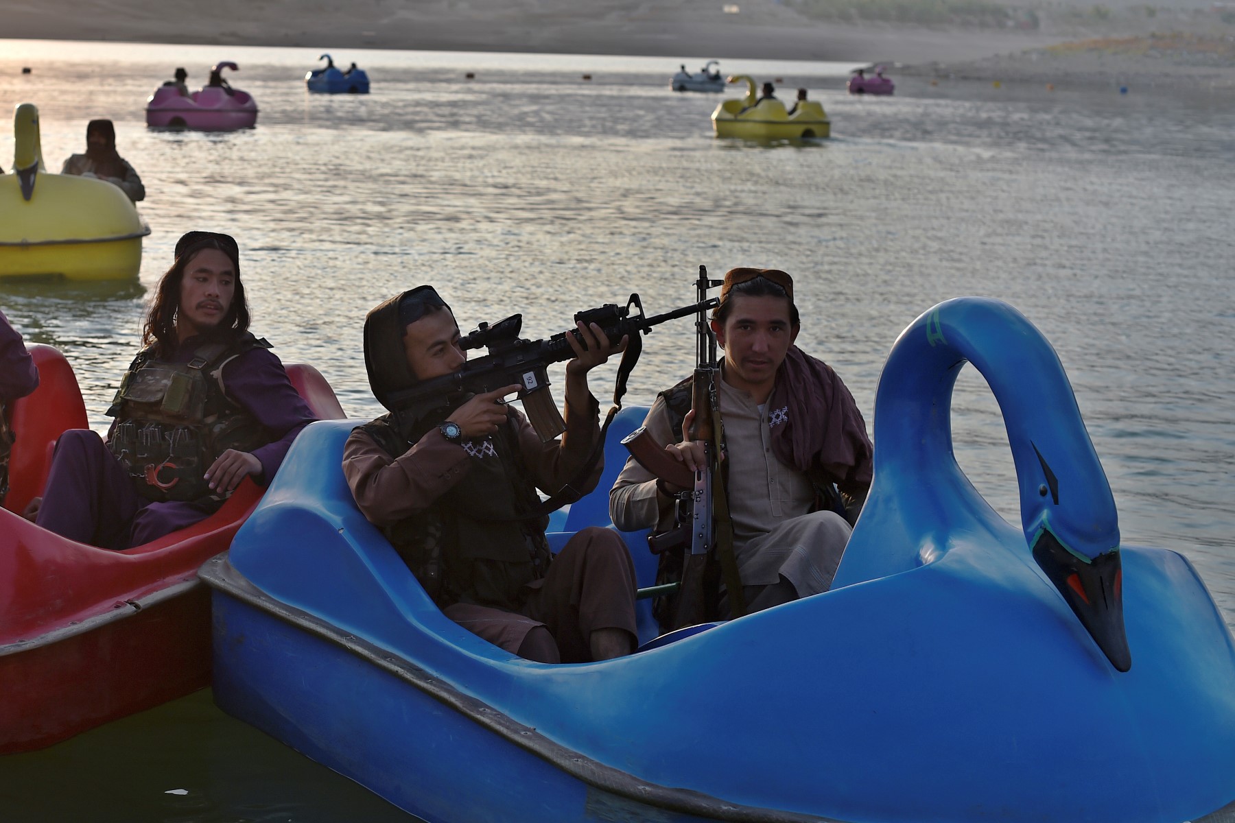 “This is Afghanistan!” a Taliban fighter shouts on a pirate ship ride at a fairground in western Kabul.