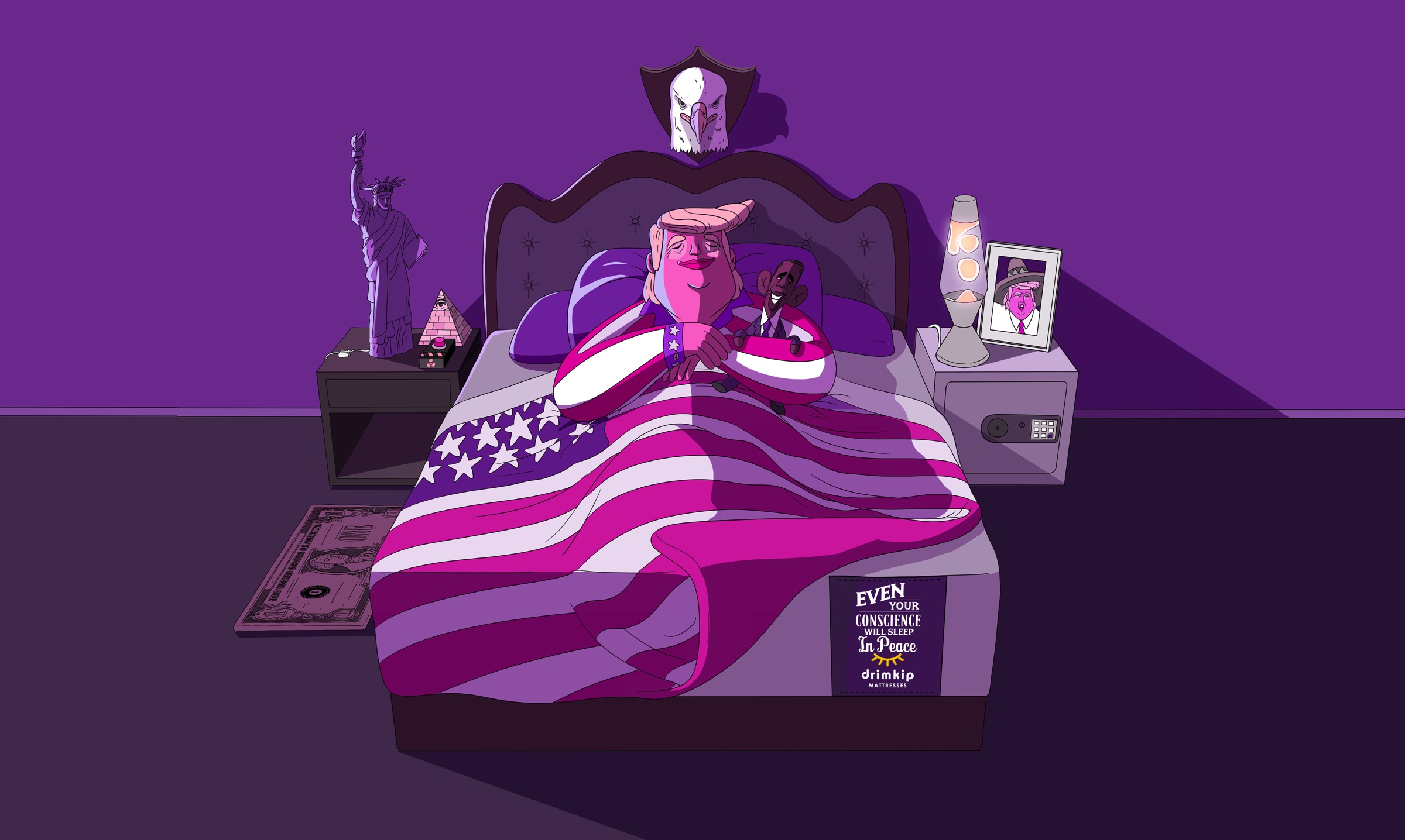 From selling pillowcases to Hamburgers and sweet candy. From his tweets to his hair, Trump has definitely left his mark and galvanized designers and copyrighters to come up with some great copy and art directions collaborations.