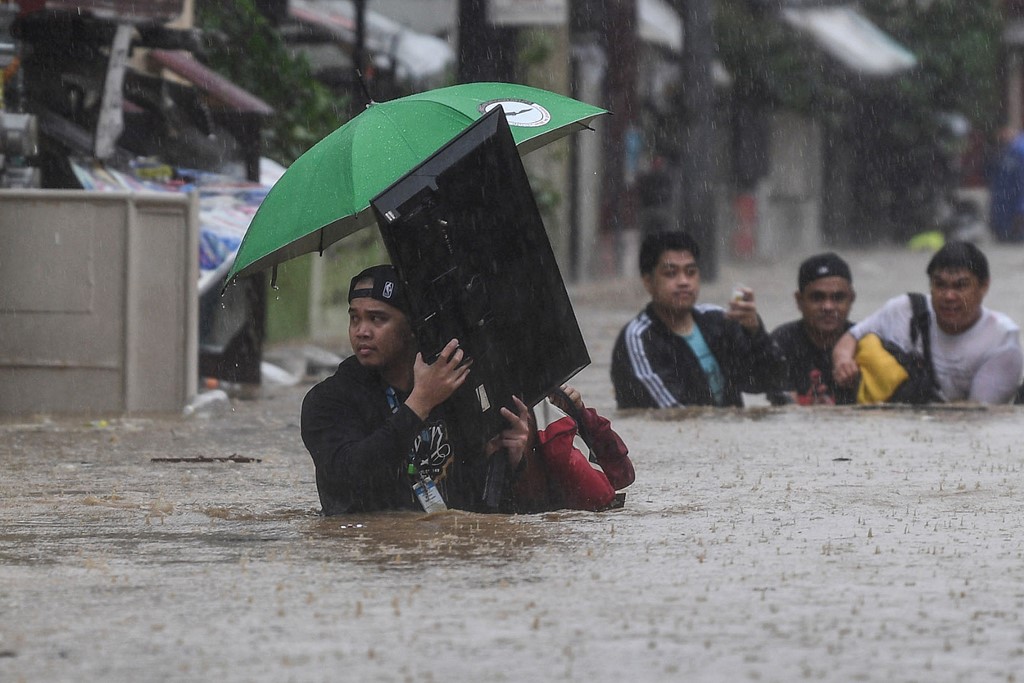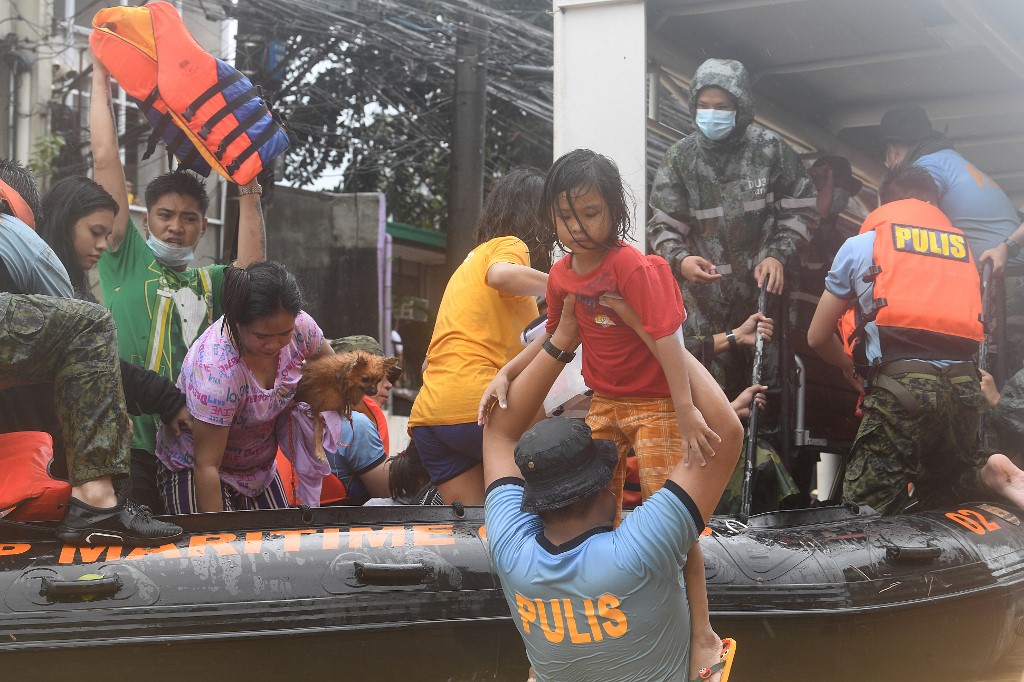 Third typhoon is likely to storm battered Philippines causing severe floods in Manila on Thursday. Many people were left stuck on rooftops.
