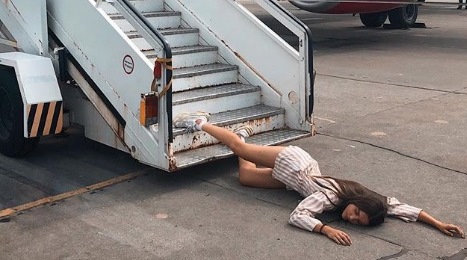 The challenge is proving to be particularly popular among Russian millionaires, as scores of images capture people apparently face-planting the tarmac after disembarking from private jets.
