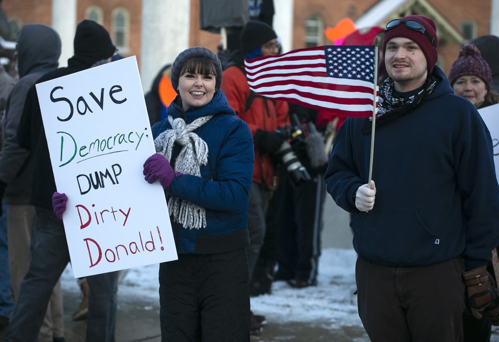 On the other hand, in New York City, thousands marched through Times Square with a giant banner inscribed with Article II, Section 4, of the Constitution that concerns impeachment.