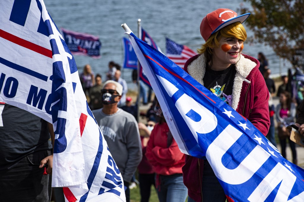 A contestant dressed as a Donald Trump Pokemon trainer participates in a Trump campaign rally named "Trumptoberfest" at Rocky Point Park in Warwick, Rhode Island on October 11, 2020. Many supporters dressed in political campaign clothing and waved flags while others dressed in festive costumes to take part in a political costume contest. Joseph Prezioso / AFP