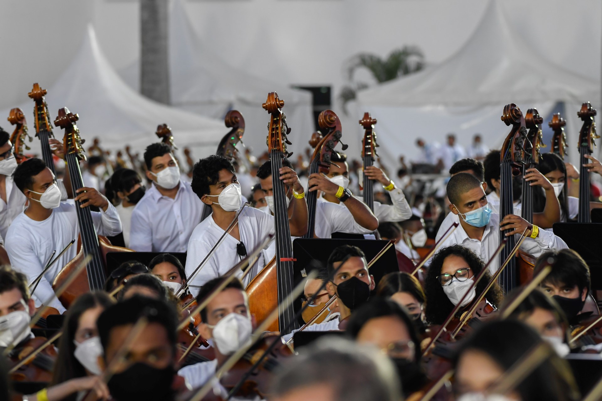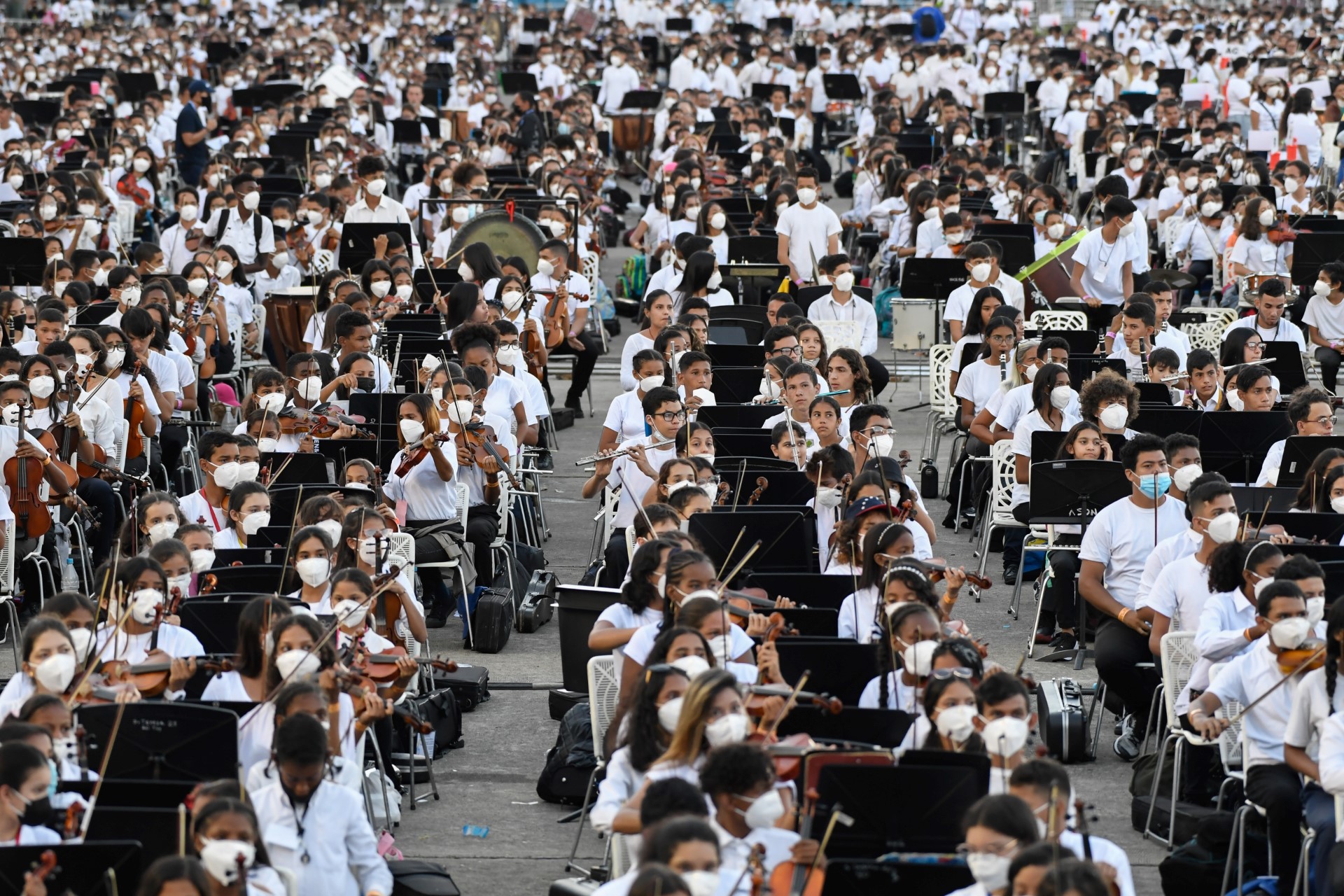 The musicians, who participated in the world record Orchestra, were brought together by the country's publicly funded "El Sistema" program.