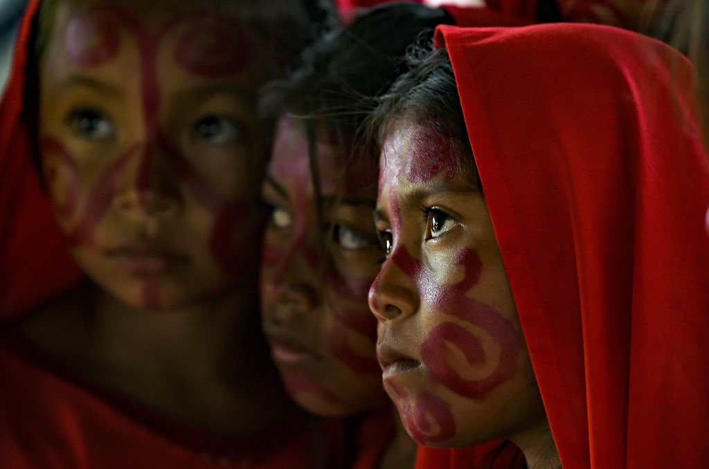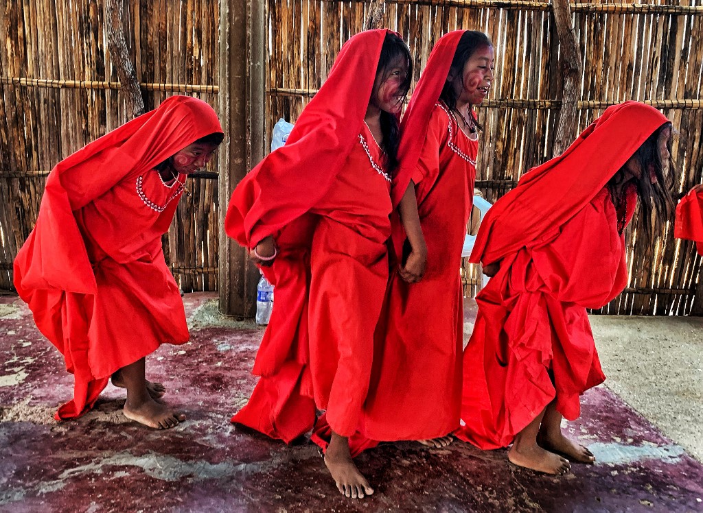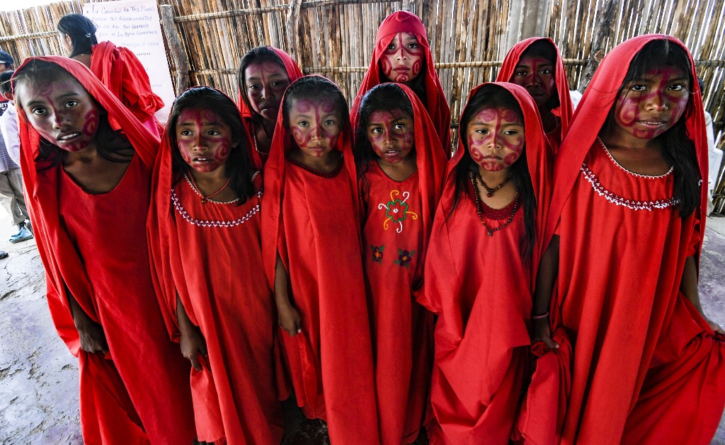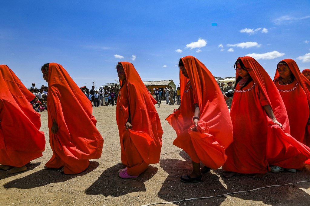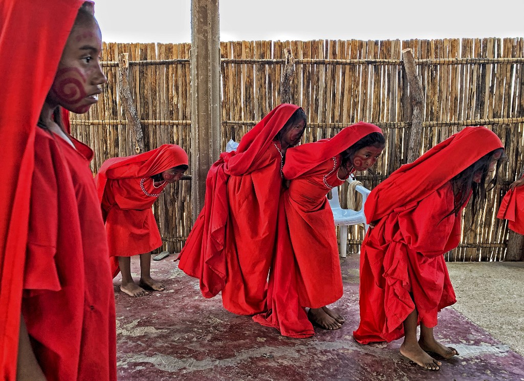 Wayuu girls performed the Yonna dance, also called Chichamaya, in Tres Bocas northern Colombia, on March 13, 2020.