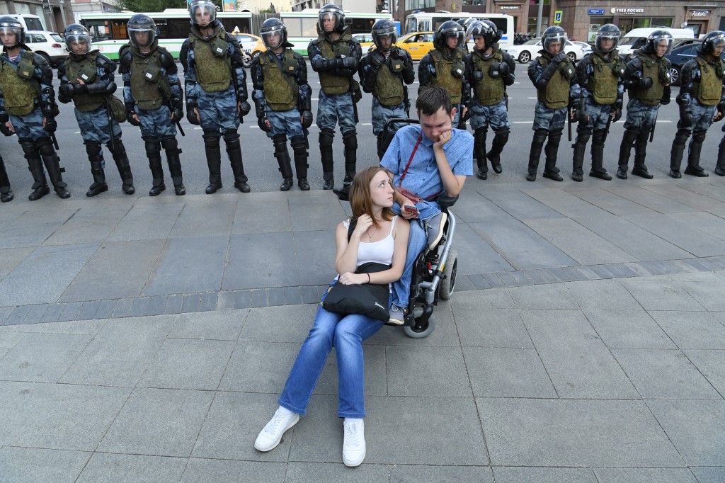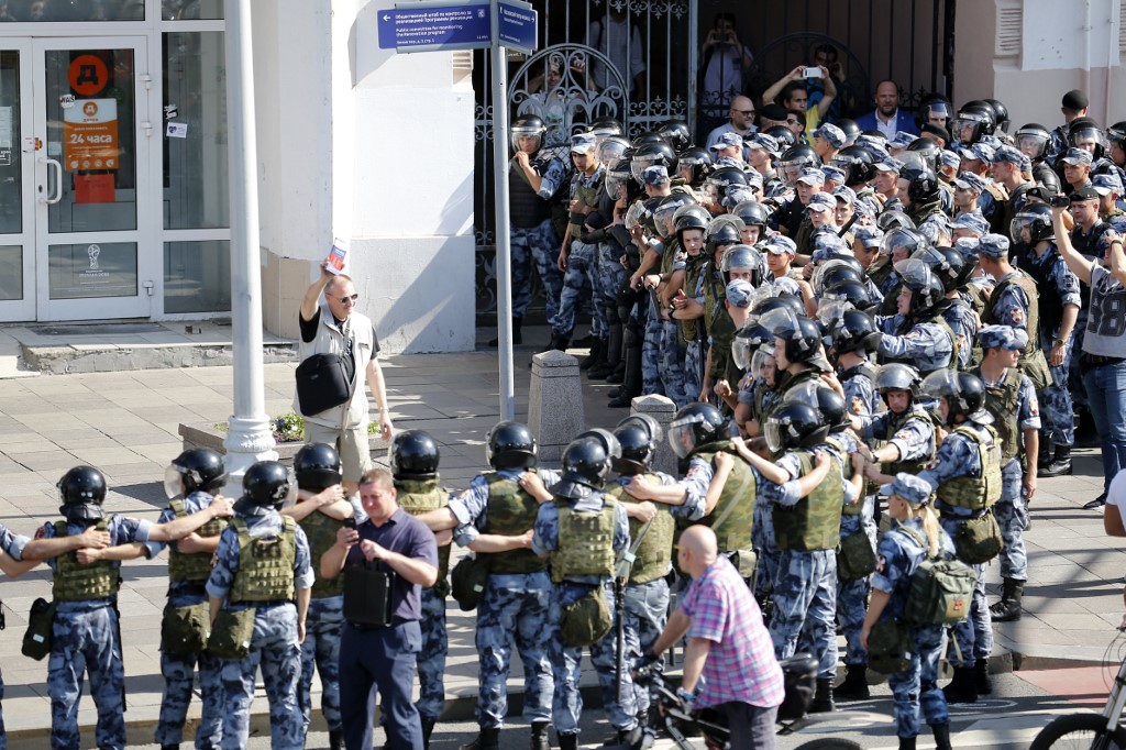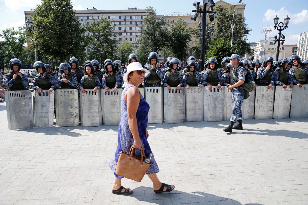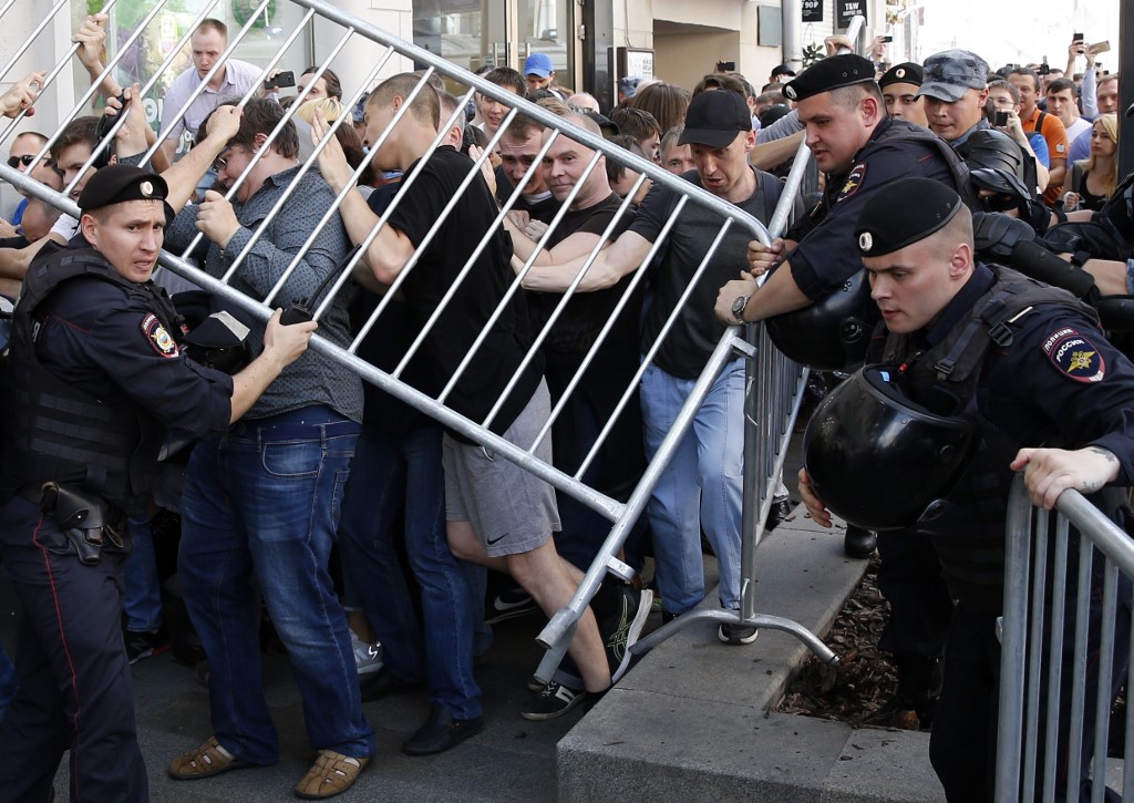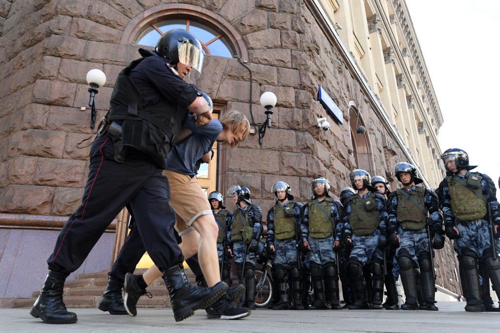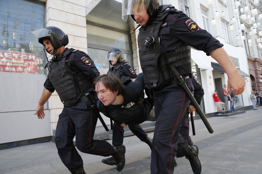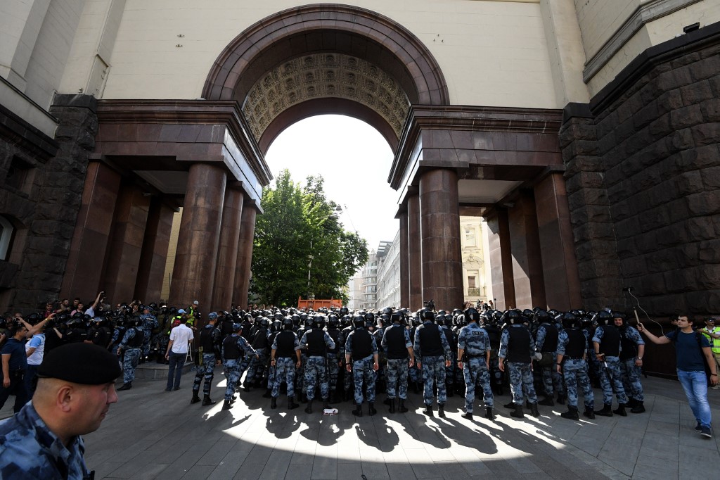 Russian police have blocked the streets of central Moscow on Saturday, July 27, 2019, and arrested over 1,300 demonstrators with a goal to blunt a protest over the fairness of coming city elections.
