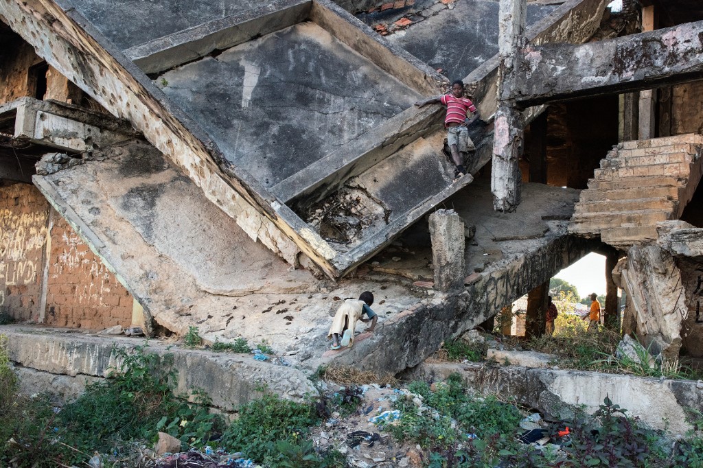 Children play on a derelict building, damaged during the Angolan civil war, in Kuito, Bie Province in central Angola. RODGER BOSCH / AFP