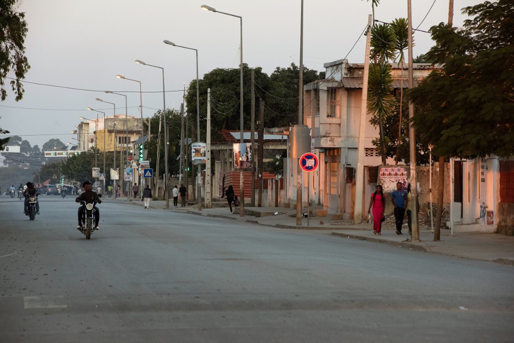 Motorcycles drive down a road in Kuito, Bie Province in Angola RODGER BOSCH / AFP