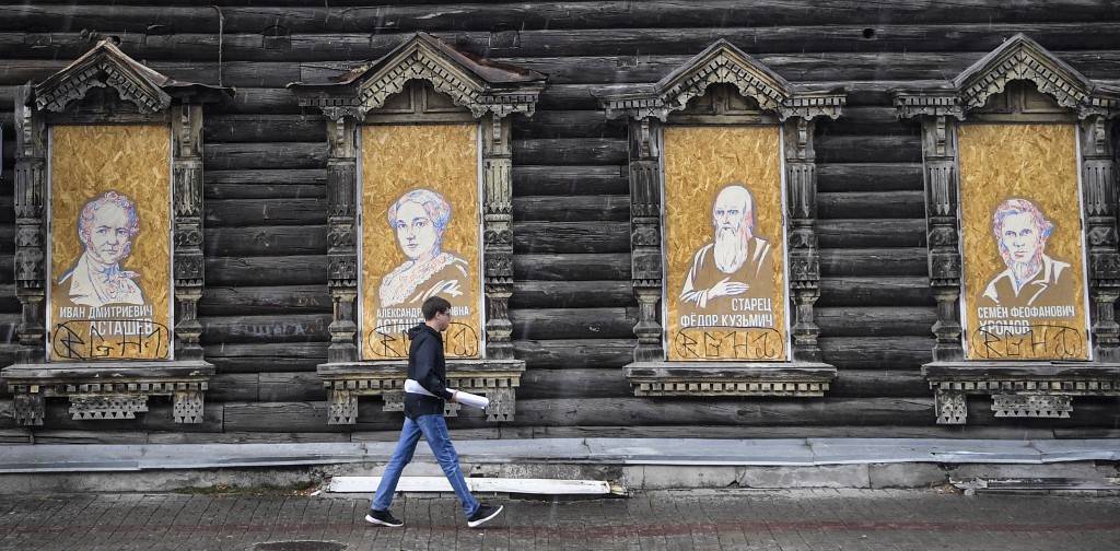 A man walks past a traditional wooden house in the Siberian city of Tomsk on September 8, 2020. Tomsk is considered to be one of the oldest towns in Siberia founded in 1604. Wooden architecture is one of the symbols of the city of Tomsk, its distinctive feature. Today Tomsk is the only city in Siberia where the background wooden buildings have been preserved, reflecting the manor structure of the city streets. Unfortunately, many wooden houses are not in very good condition and require restoration. Alexande