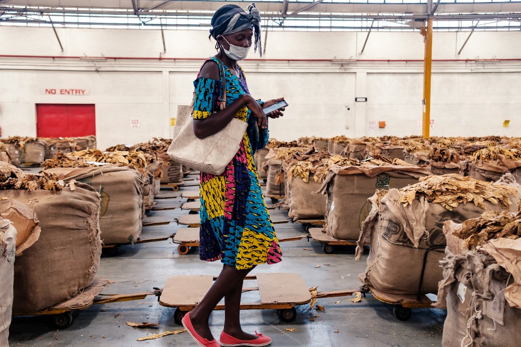 A tobacco farmer looks for her bales during the official opening of the tobacco selling season with few farmers in attendance due to COVID-19 restrictions at the Tobacco Sales Floors (TSF) in Harare on April 7, 2021. Jekesai NJIKIZANA / AFP