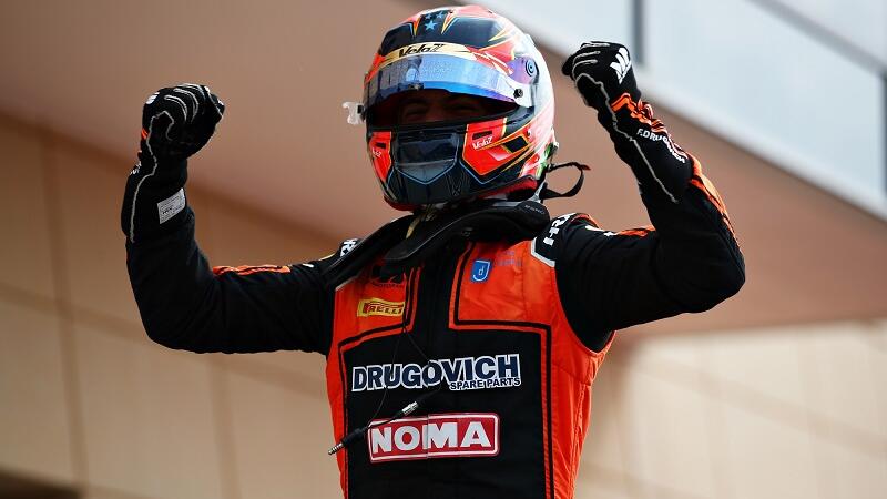Felipe Drugovich of MP Motorsport raced to an impressive victory today in the Feature Race of the FIA Formula 2 Championship, being held in support of this weekend’s Formula 1 Gulf Air Bahrain Grand Prix.