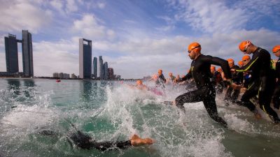 This year also sees the return of the World Triathlon Abu Dhabi Junior Triathlon and Aquathlon, a fun event aimed at encouraging youngsters to get active. There are three entry categories: ‘Tiny Triathlete’ — a 50m swim and a 100m run (5-8 years), ‘Junior Aquathlon’ distance featuring a 200m swim and 1.5km run (9-15 years), and ‘Junior Triathlon Super Sprint’ which consists of a 375m swim, 10km cycle and a 2.5km run (11-17 years).