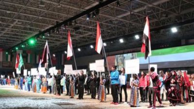 The opening ceremony began with a grand entrance by the participating countries: Jordan, Bahrain, Tunisia, Algeria, Saudi Arabia, Sudan, Somalia, Iraq, Oman, Palestine, Qatar, Kuwait, Lebanon, Libya, Egypt, Morocco, Yemen, and the host country, the United Arab Emirates.
