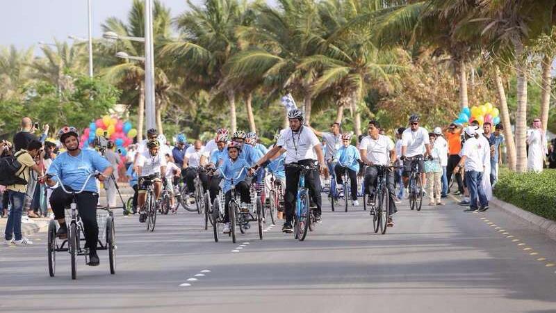 The Jeddah Autism Center, a subsidiary of Al Faisalya Women Welfare Society, held a Cycling Marathon to celebrate World Autism Awareness Day under the slogan #Altouhdi_kman_draj (#autistics_ are also_ cyclists) on Saturday.