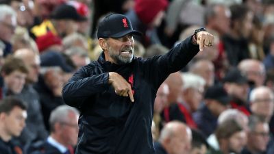 Liverpool's German manager Jurgen Klopp gestures from the sidelines during the UEFA Champions League group A football match between Liverpool and Glasgow Rangers at Anfield in Liverpool, north west England on October 4, 2022. (Photo by Nigel Roddis / AFP)