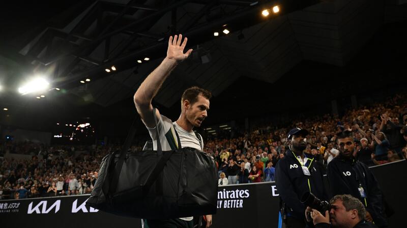 Britain's Andy Murray waves as he leaves after losing to Spain's Roberto Bautista Agut during their men's singles match on day six of the Australian Open tennis tournament in Melbourne on January 21, 2023. (Photo by WILLIAM WEST / AFP)