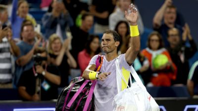 Rafael Nadal of Spain acknowledges the crowd as he leaves the court after losing to Borna Coric of Croatia during the Western & Southern Open at Lindner Family Tennis Center on August 17, 2022 in Mason, Ohio. Matthew Stockman/Getty Images/AFP (Photo by MATTHEW STOCKMAN / GETTY IMAGES NORTH AMERICA / Getty Images via AFP)