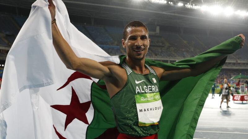 Taoufik Makhloufi added silver to his 1,500m gold from 2012 in an Algerian record 1:42.61, and the bronze went to American Clayton Murphy in a personal best 1:42.93.
