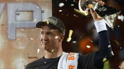 Peyton Manning of the Denver Broncos celebrates with the Vince Lombardi Trophy after Super Bowl 50 at Levi's Stadium in Santa Clara, California February 7, 2016. The Broncos beat the Carolina Panthers 24-10.