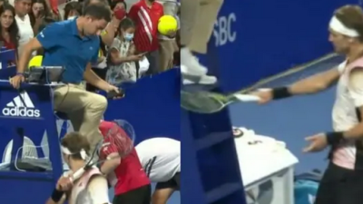 The World number three hit the umpire's chair several times with his racquet after losing a decisive tie-break.
