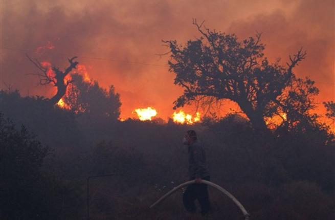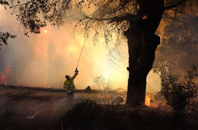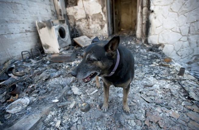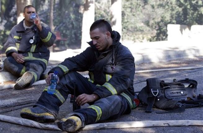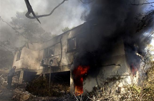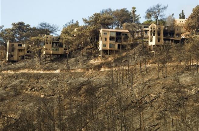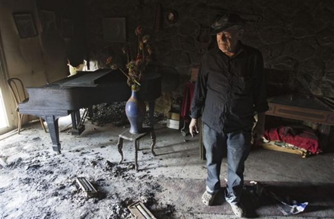 Israeli Nissan Cohen, 84, inspects his burnt Nisco Museum of Music boxes and Mechanical Music, in the artists village of Ein Hod near the northern city of Haifa, after a massive forest fire was finally brought under control, with the assistance of equipment and personnel from more than 16 countries.